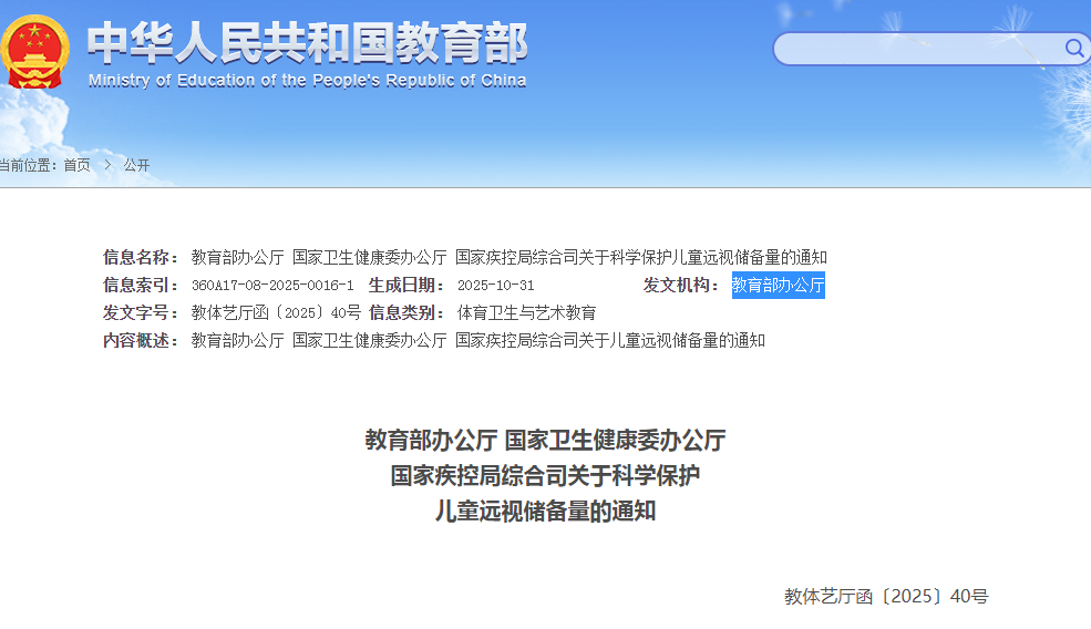 科学近视防控才有效!教育部等3部门联合发布《关于科学保护儿童远视储备量的通知》
