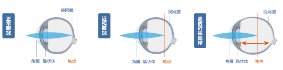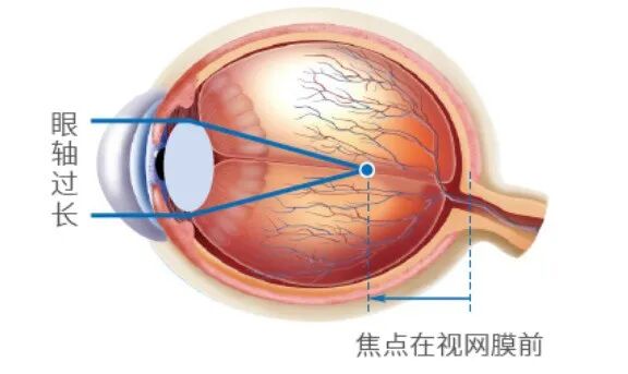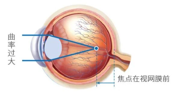 屈光性近视:屈光性近视是由于角膜曲率过大、晶状体过凸等,使得影像无法落在视网膜上,而是落在视网膜前方。
